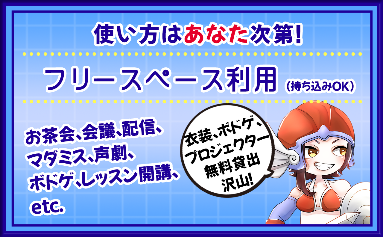 - ボードゲーム、カードゲームなども多数ご用意しておりますので、お遊び目的でのご利用も大歓迎!