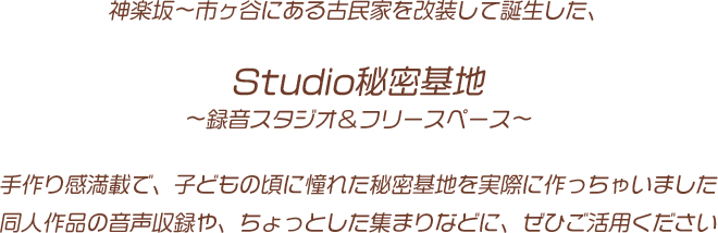 - エンジニアが丁寧にご説明いたしますので、初めて収録を経験される方もお気軽に『入門的スタジオ』としてご利用ください